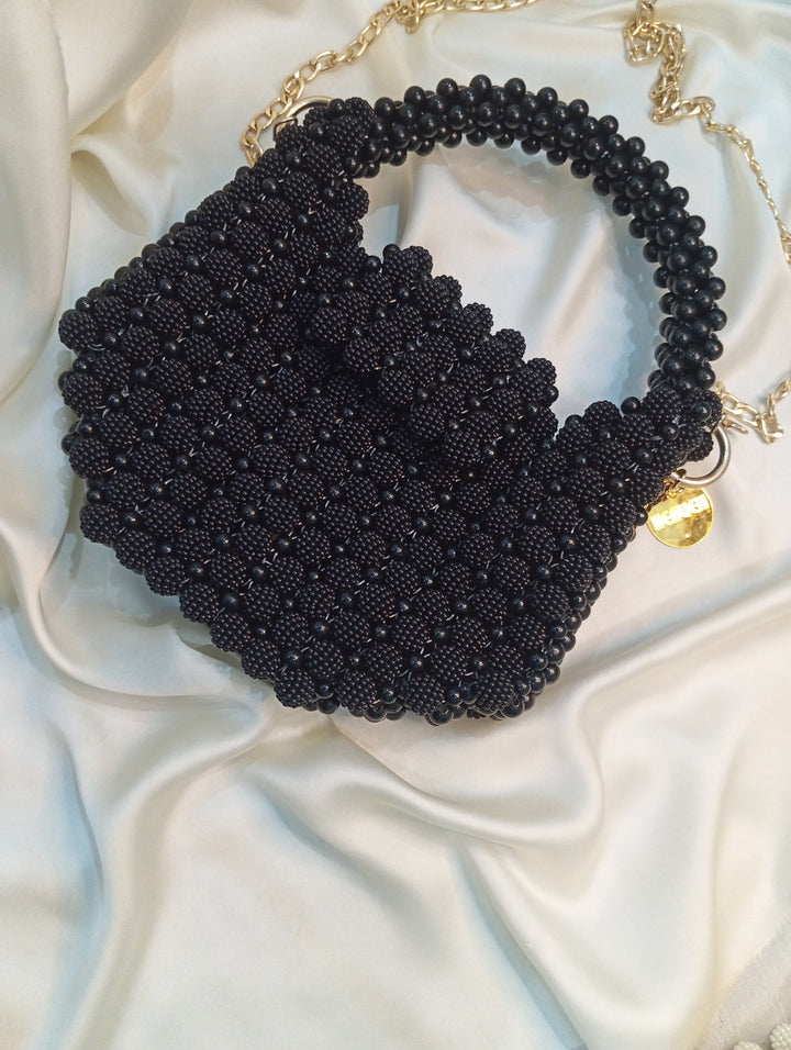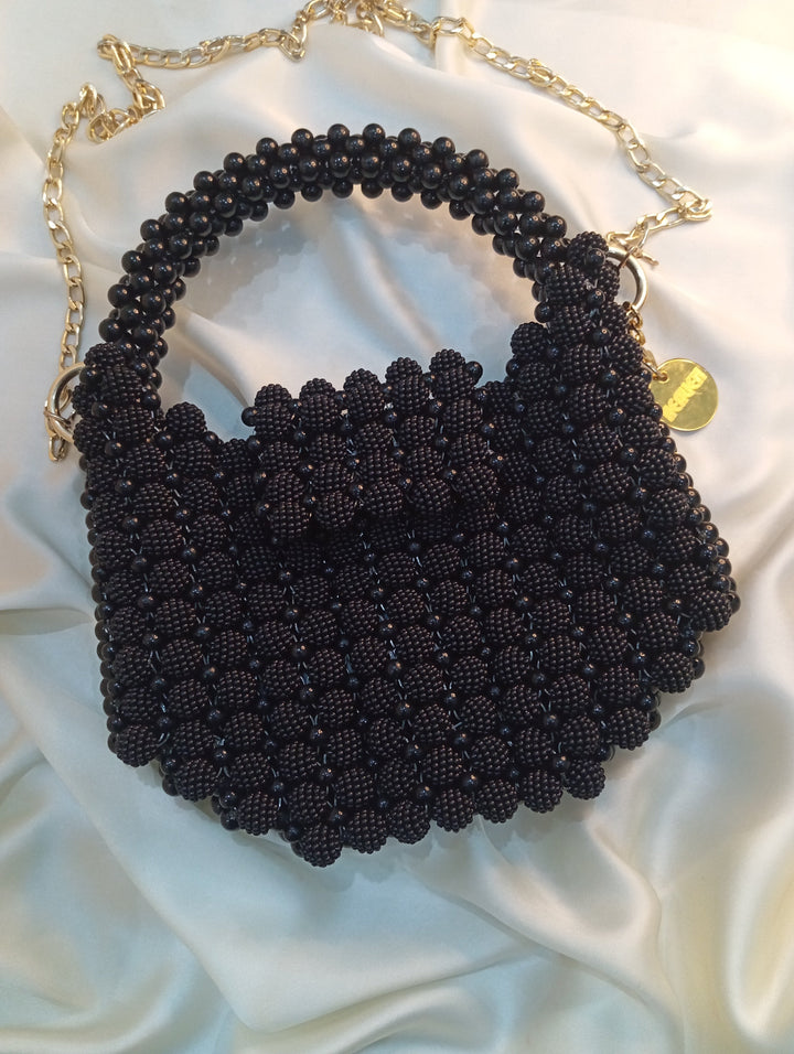 •A rich mix of glossy black pearls and deep berry-toned beads for a bold, elegant finish