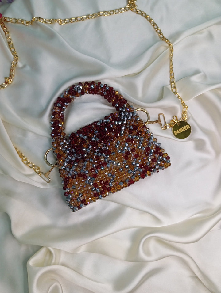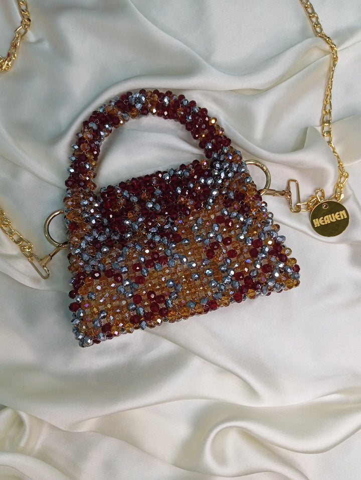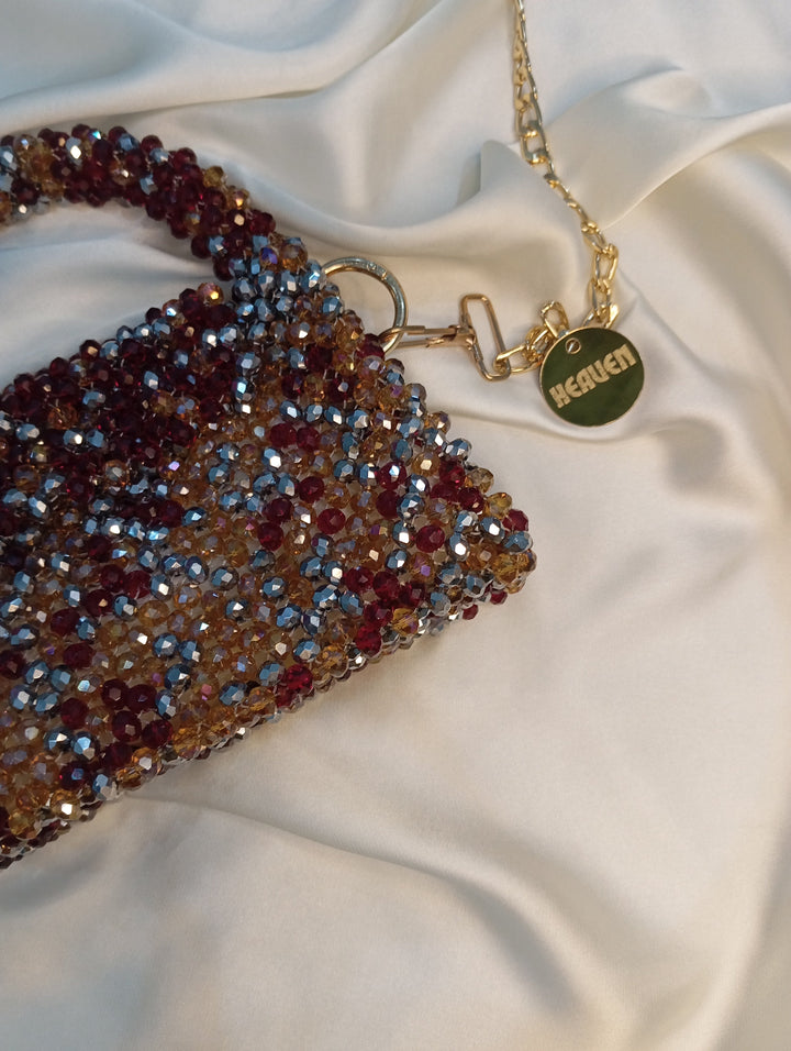 •A dazzling fusion of fiery red, warm gold, and sparkling silver crystals